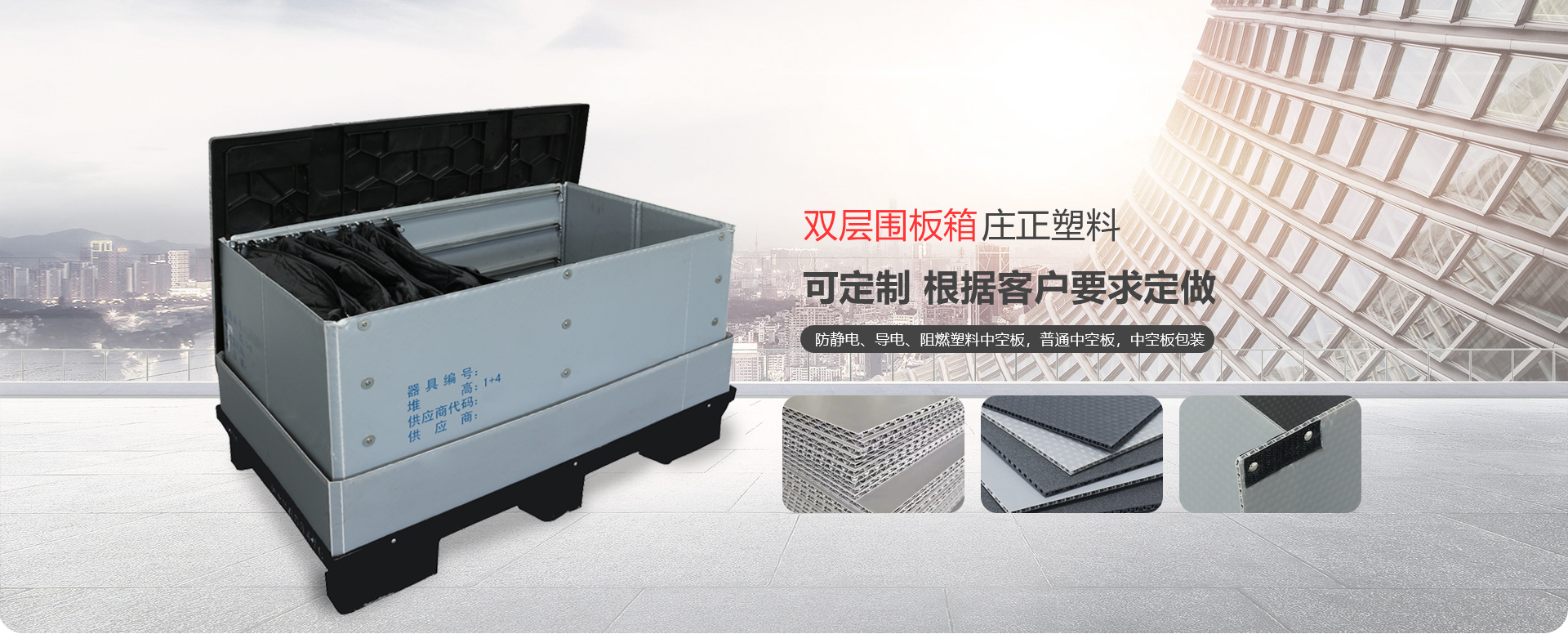 威海莊正塑料中空板有限公司是一家專注于圍板箱產品和中空板產品研究、開發、生產及銷售的高科技企業。我司專業生產銷售圍板箱、防靜電、導電、阻燃塑料中空板,普通中空板,中空板包裝等。是一家及研發、設計、生產、銷售一體化的專業制造商。產品具有質輕、防潮、耐油污、抗腐蝕、無毒、無污染顏色豐富的新型環保產品。 主要產品:圍板箱、普通塑料中空板,防靜電、導電塑料中空板,中空板周轉箱,中空板包裝箱,中空板墊板,中空板托盤、塑料包裝制品等系列產品。